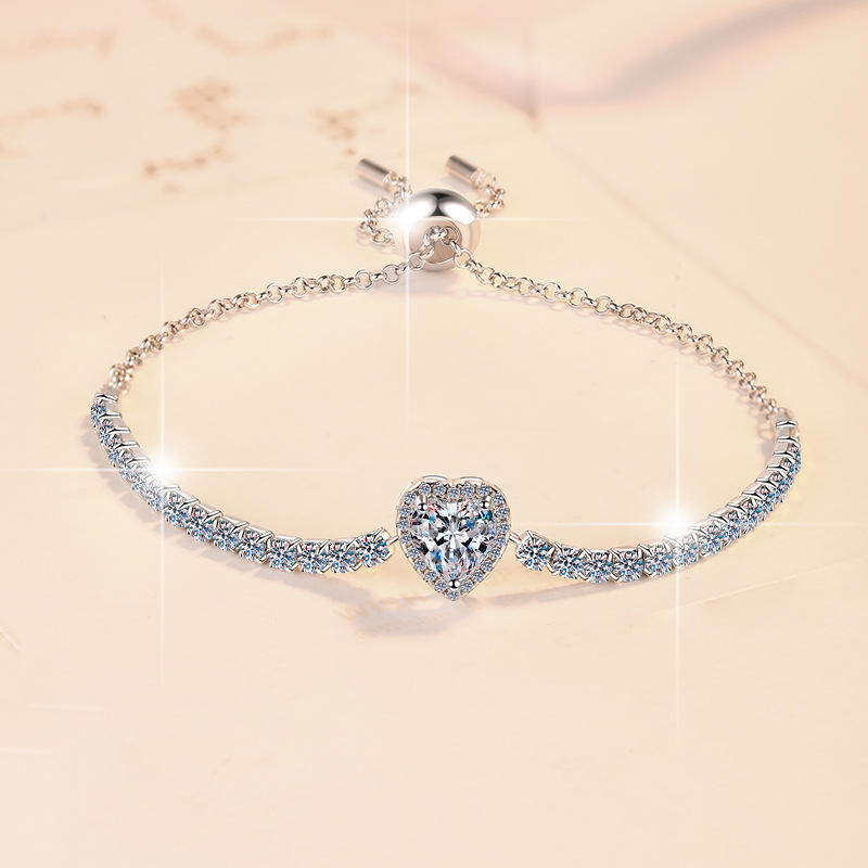 Premium Women's Engagement Bracelet Full Diamond VVs1 Moissanite S925 Sterling Silver Heart Shape Perfect Gift for Ladies